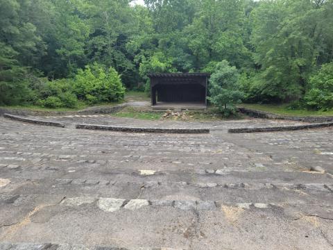The Amphitheater is located right before you embark on your hike to the pinnacles, look for the big flag that says Pop-Up Library.