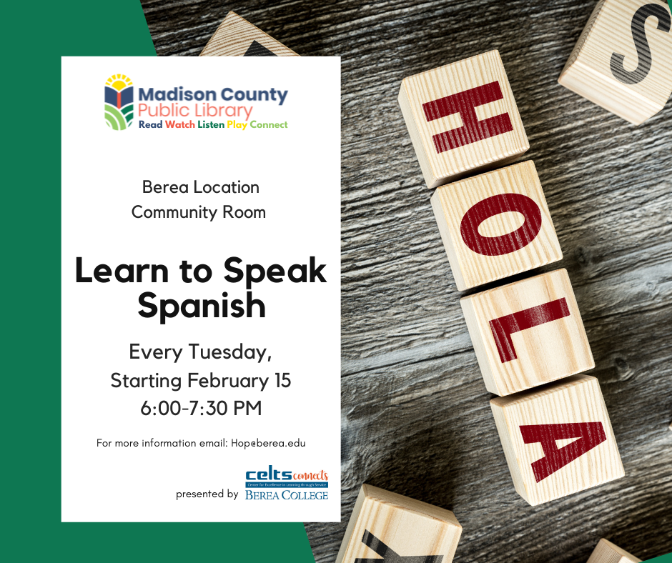 Berea College's Hispanic Outreach Program (HOP) will help you to learn or improve your Spanish language skills. Classes are geared for beginners.